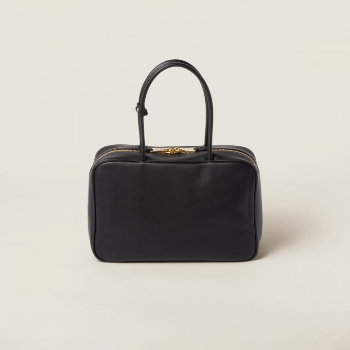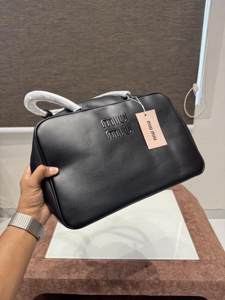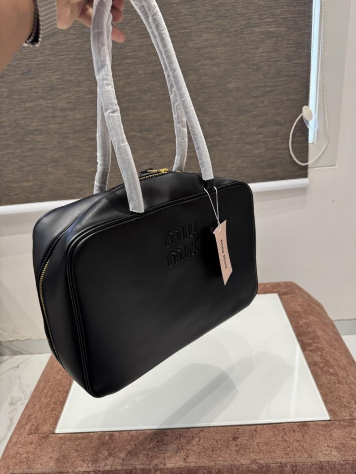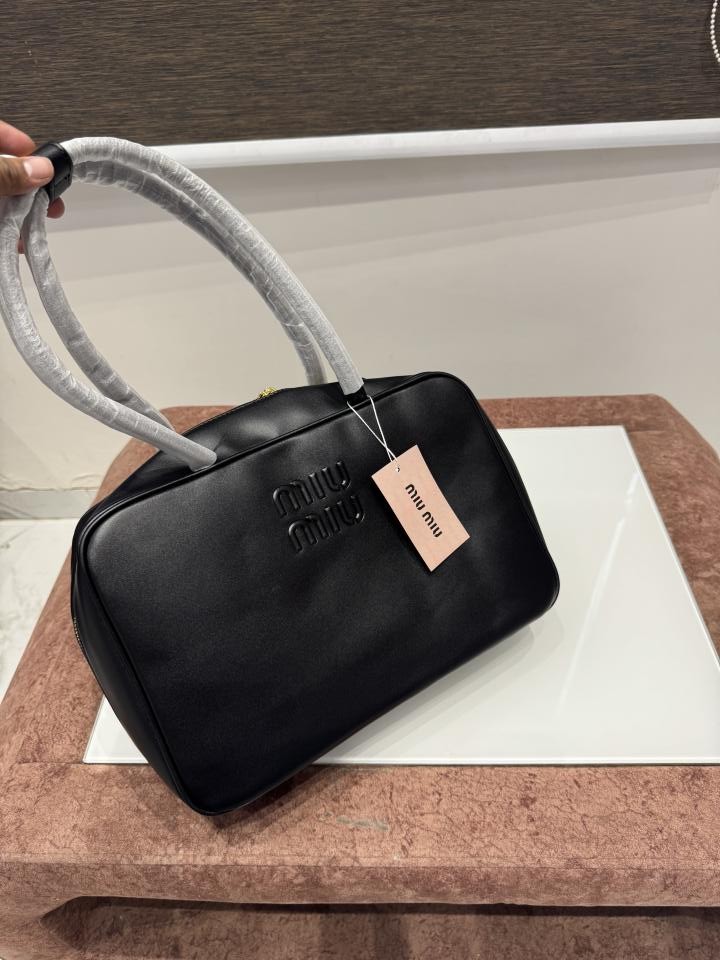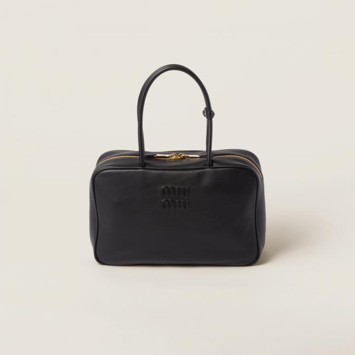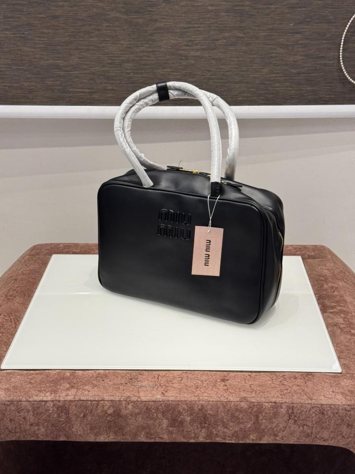 Miu Miu Beau Logo Debossed Leather Bag 2159 Black